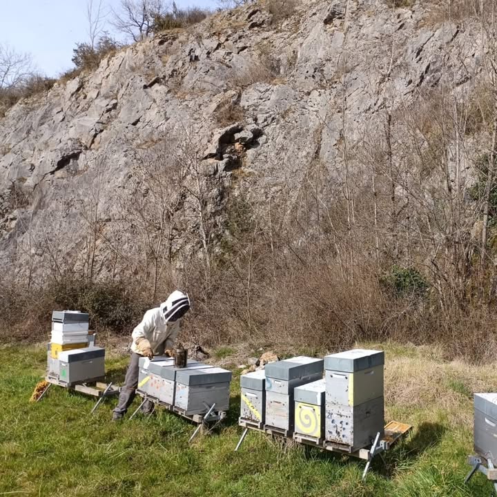 🌸🌿 Les premiers pissenlits, prunelliers et saules offrent nectar et pollen à nos butineuses, qui s’activent avec énergie. Un vrai plaisir de les voir reprendre du service après l’hiver ! Et certain se régale à mettre les mains dans la ruche!☺️